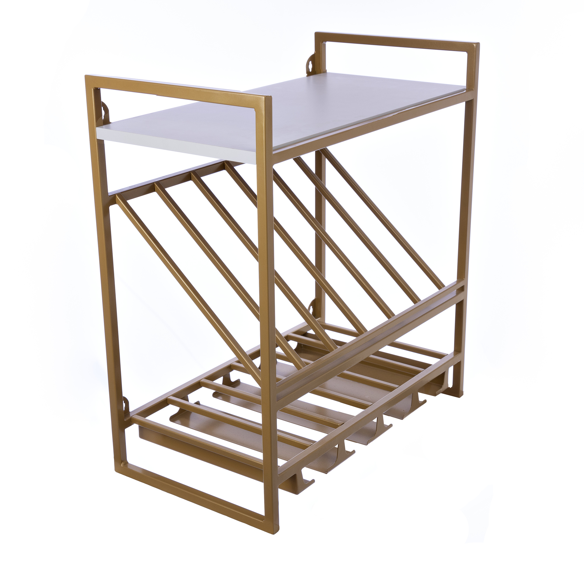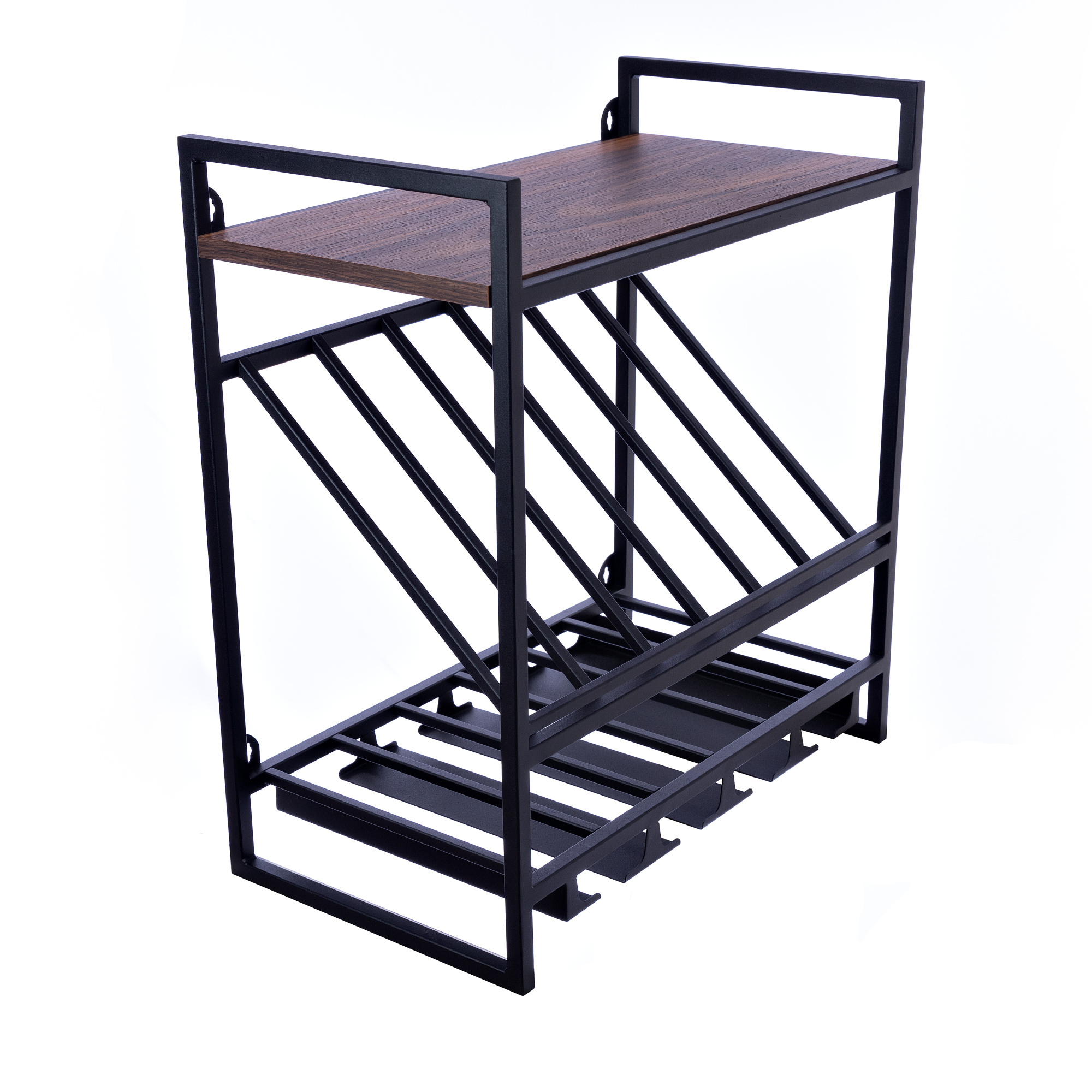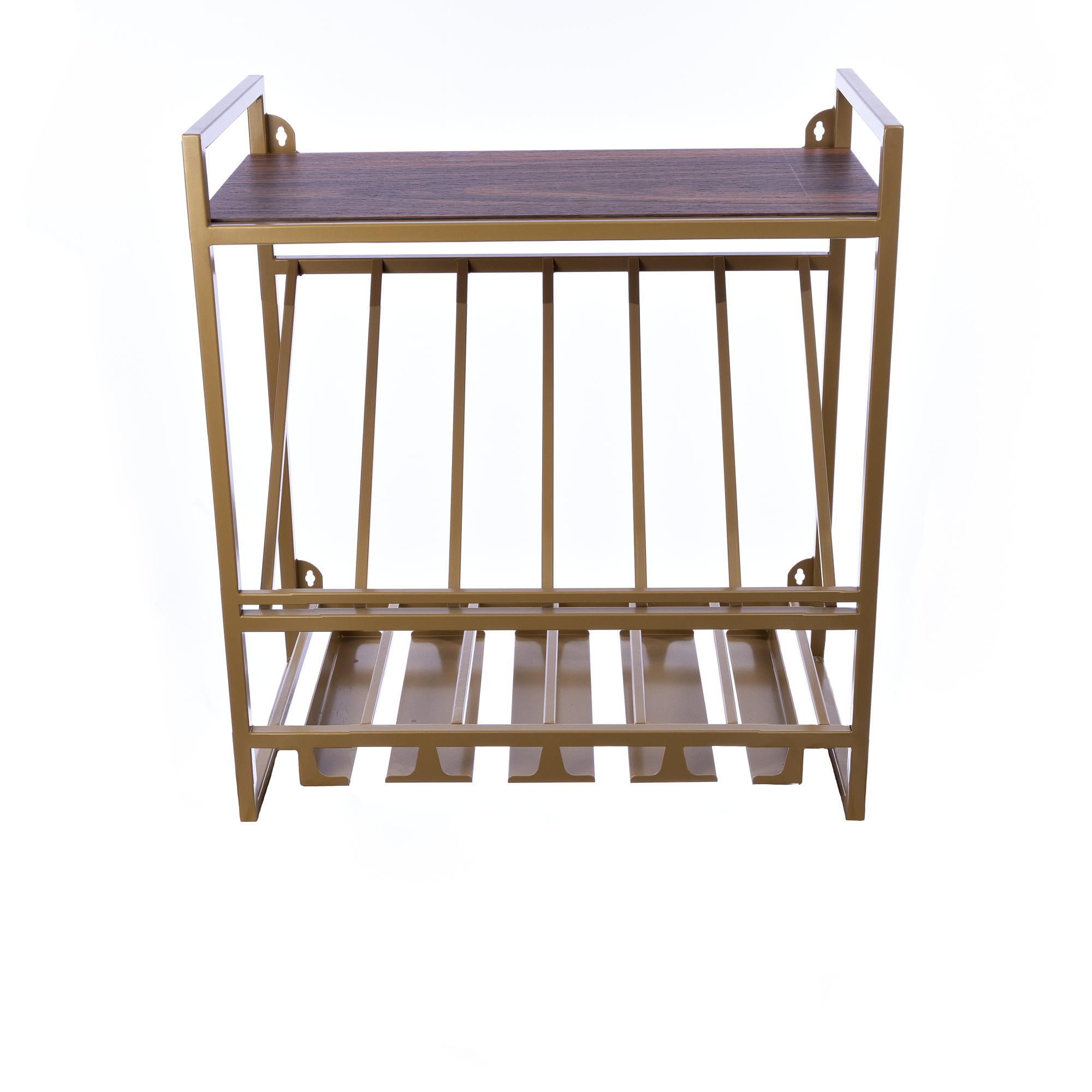 *Prateleira de armazenamento multifuncional - Este suporte para garrafas de vinho e suportes para taças acomoda até 12 garrafas de seu vinho favorito e possui um suporte para taças suspenso, taças de cabeça para baixo, mantendo-os livres de poeira e ao seu alcance, enquanto que a prateleira superior oferece muito espaço para plantas, livros e álbuns de fotos, etc.