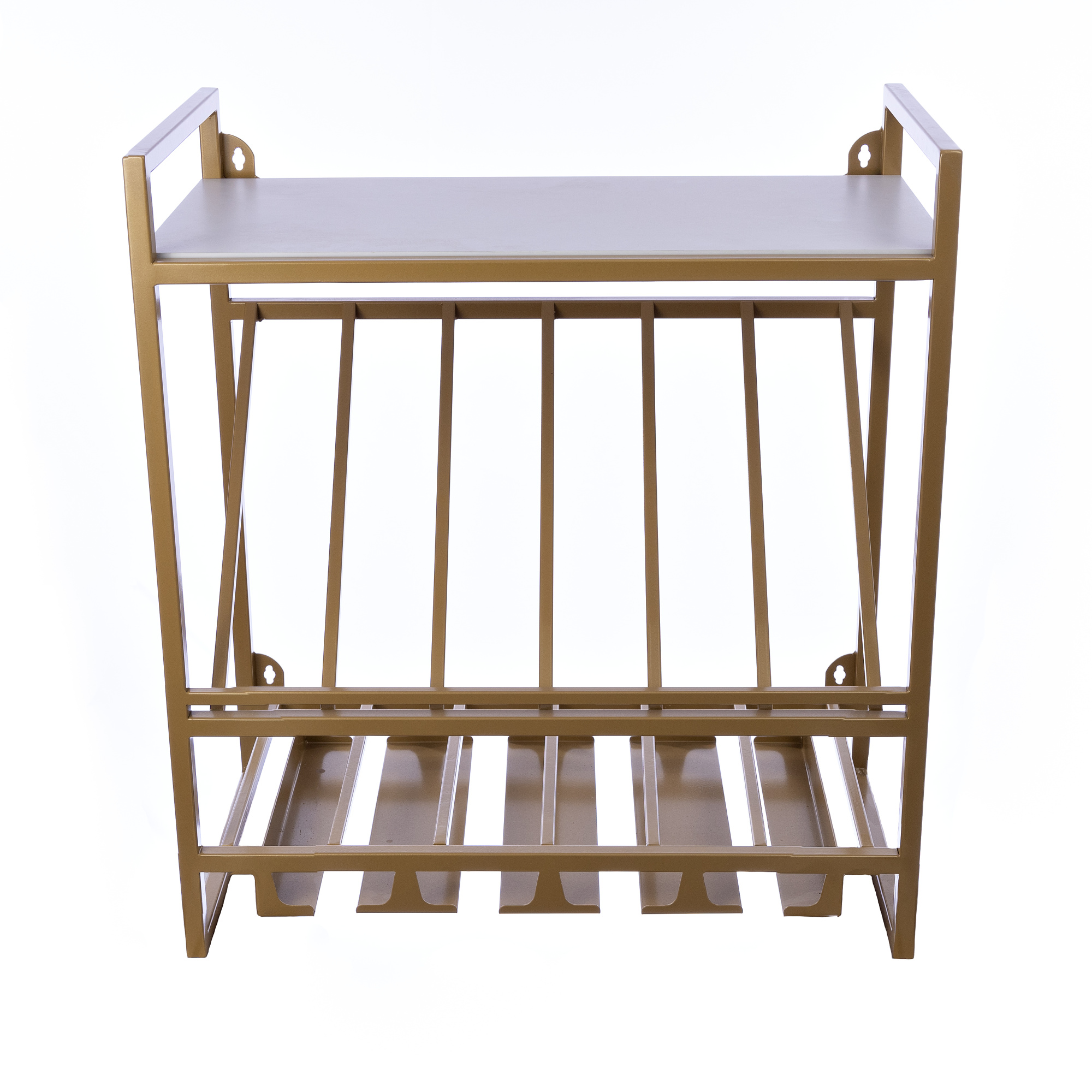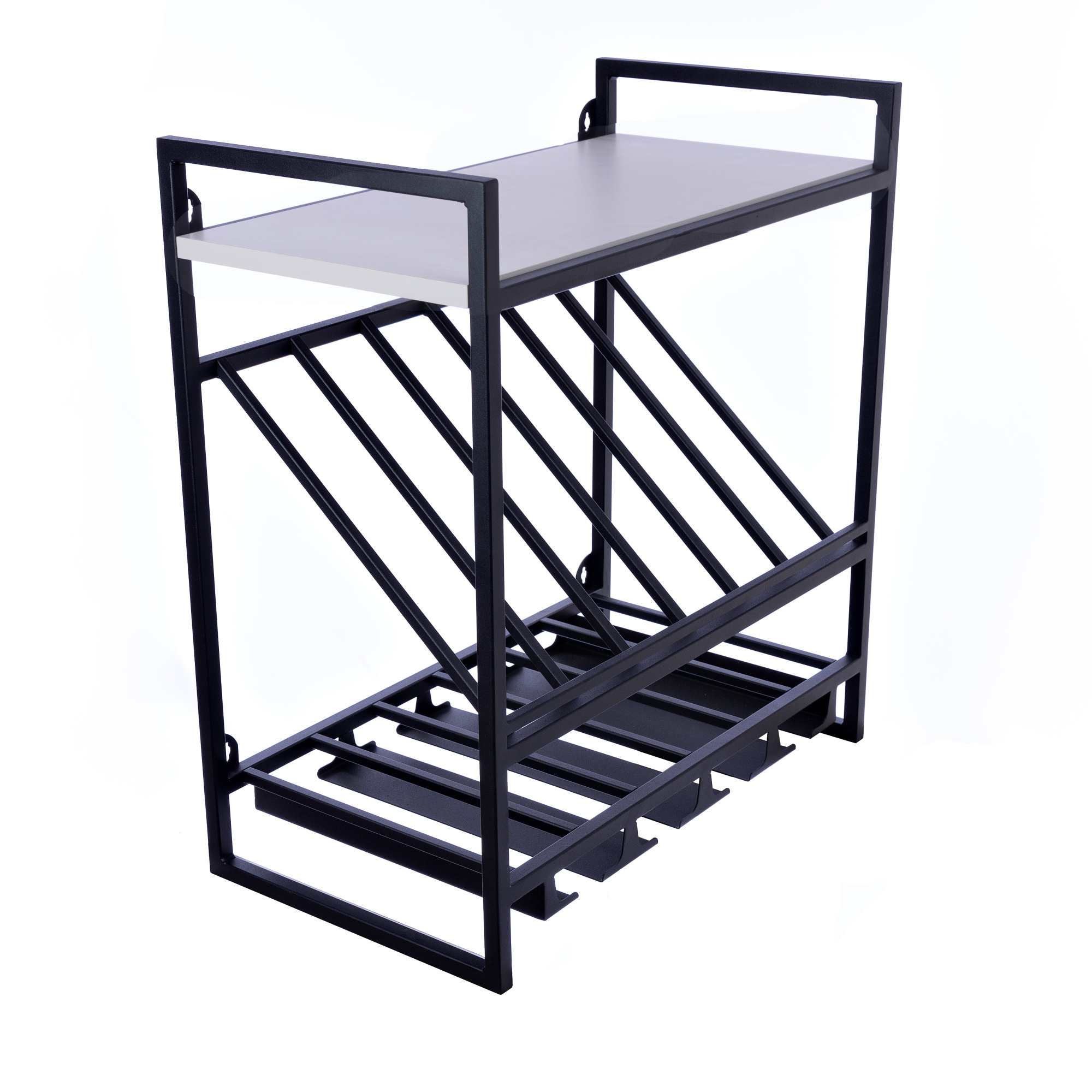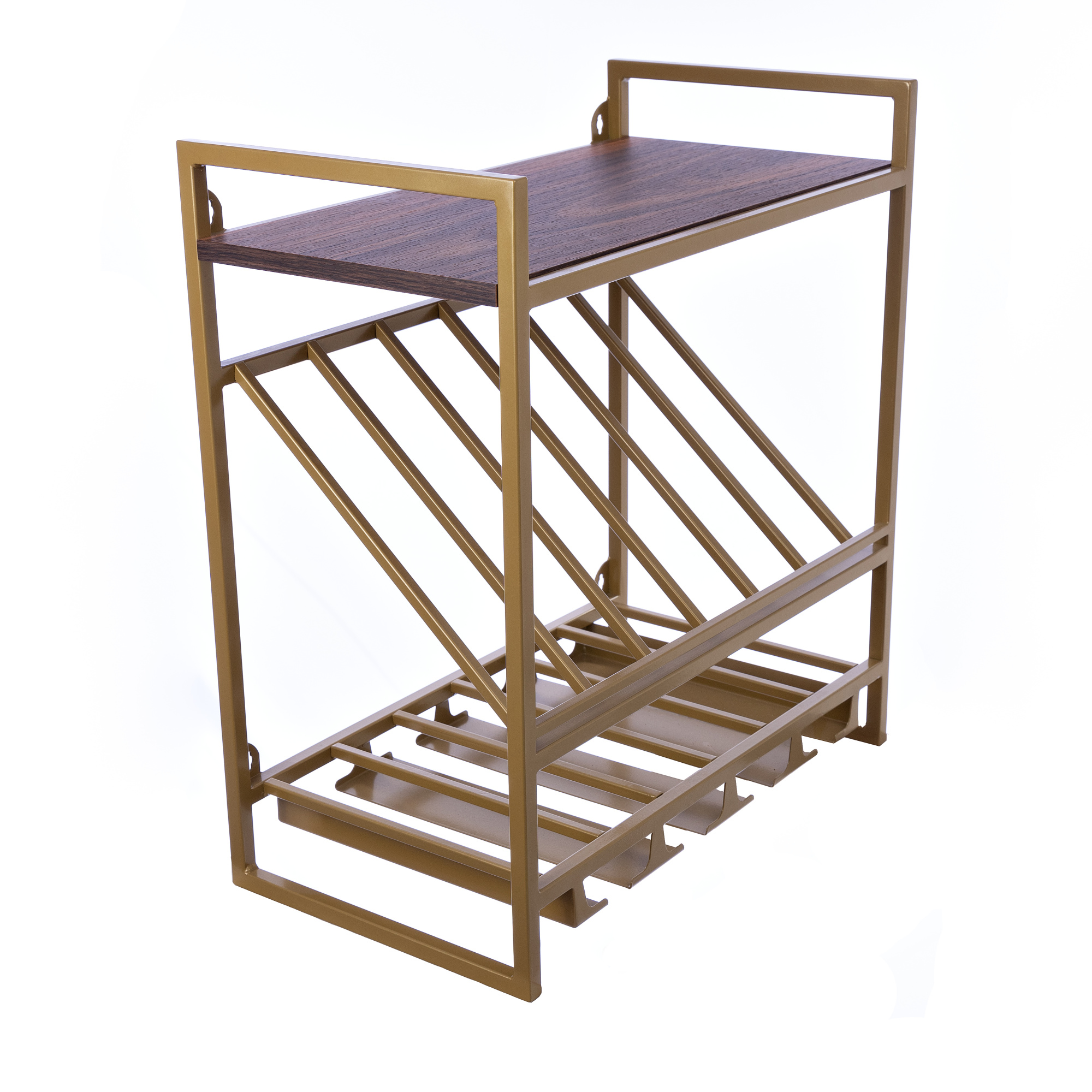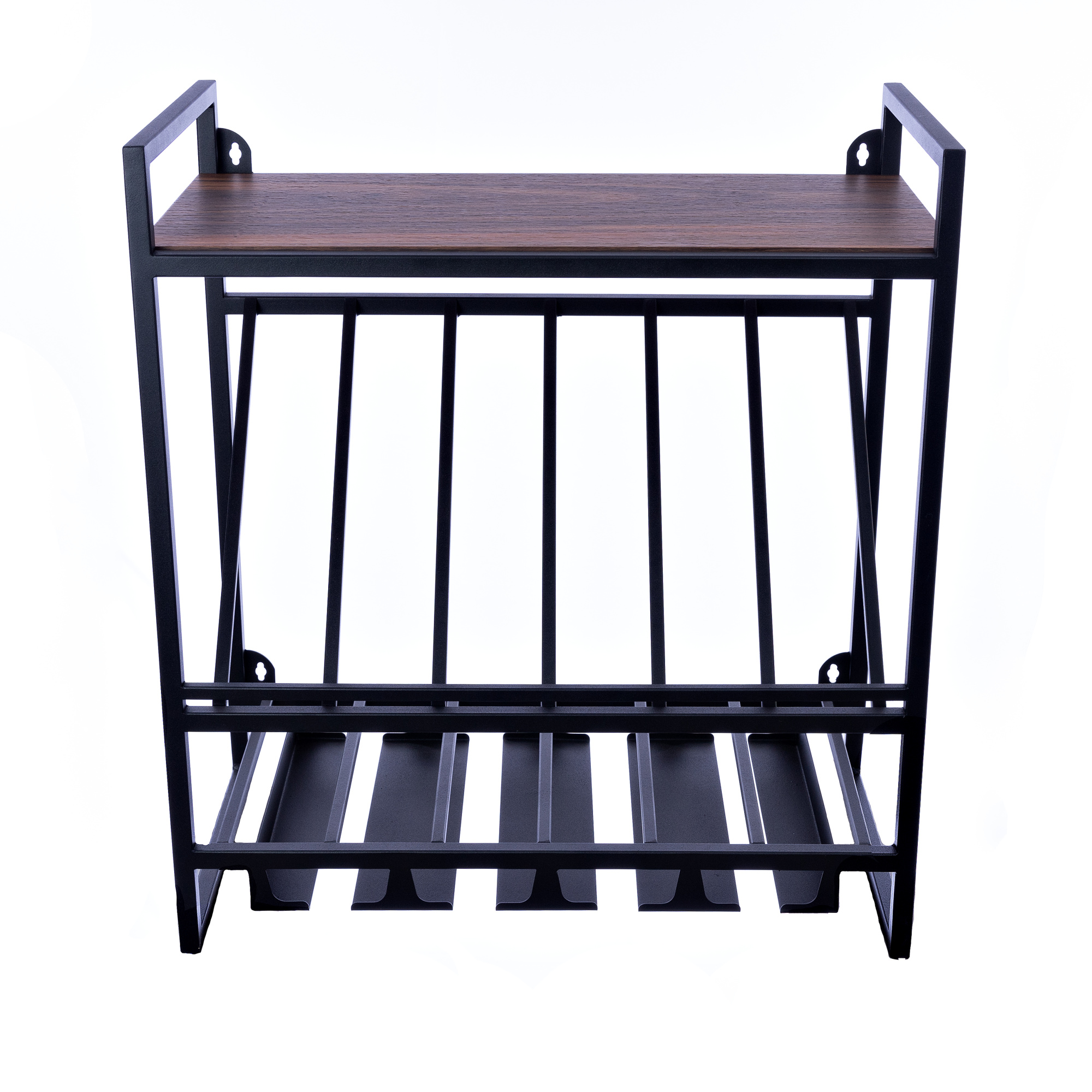 *Prateleira de armazenamento multifuncional - Este suporte para garrafas de vinho e suportes para taças acomoda até 12 garrafas de seu vinho favorito e possui um suporte para taças suspenso, taças de cabeça para baixo, mantendo-os livres de poeira e ao seu alcance, enquanto que a prateleira superior oferece muito espaço para plantas, livros e álbuns de fotos, etc.