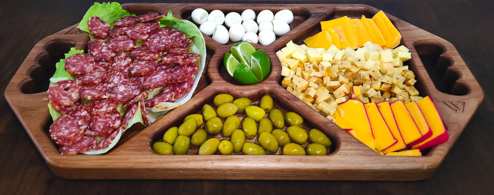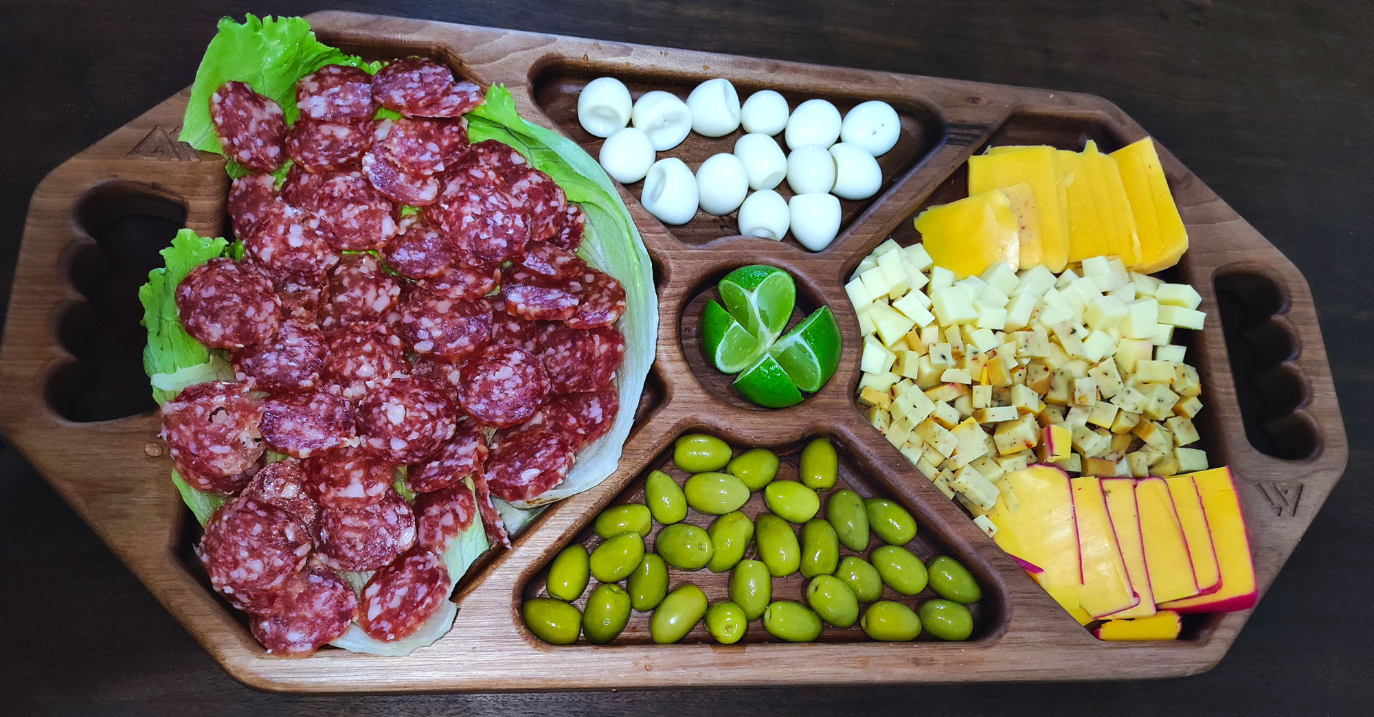 Eleve a experiência gastronômica em grande estilo com essa petisqueira que combina funcionalidade, exaltação e beleza natural da madeira jequitibá.